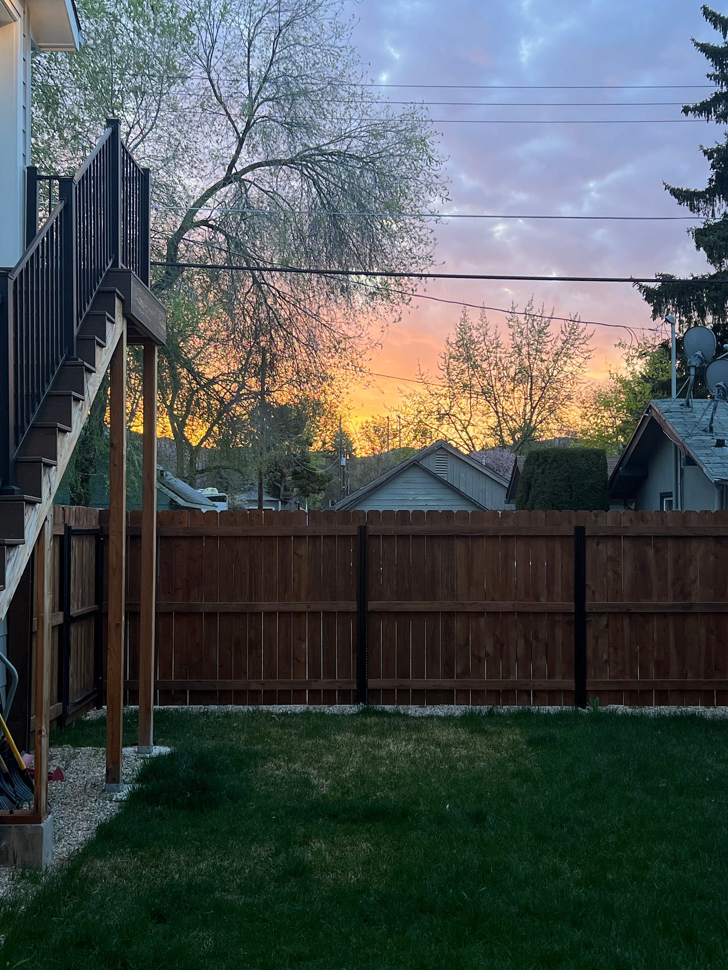 Suddenly, I was thankful for that rundown house and fence because they held quiet, private and kind neighbors. I no longer saw the tree as something that obstructed my view but one that provided the needed shade in the summer and created a home for a pair of raptors that my son became enthralled to witness. And the power lines caused me to think about how lucky we are to live at a time where we don’t have to think twice about flipping a switch or turning up the heat if we’re cold. Electricity is a miracle, and I had the stuff flowing through my backyard.